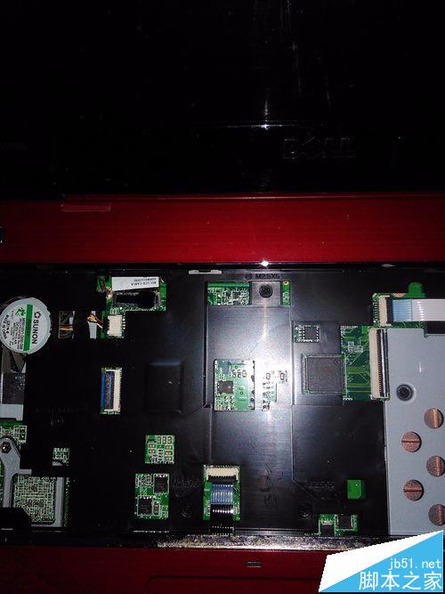 5、取下鍵盤下面板。擰下鍵盤下的螺絲,拆開連接線。取下面板。