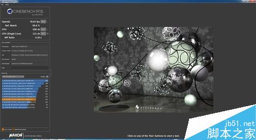 CINEBENCH R15測試,CPU部分得到的分數比較高,OpenGL主要測試GPU核心處理能力,看分數的排行已經和部分i7處理器相當了。