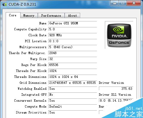 CUDA-Z截圖,這里顯示了GPU有關CUDA的詳細參數。