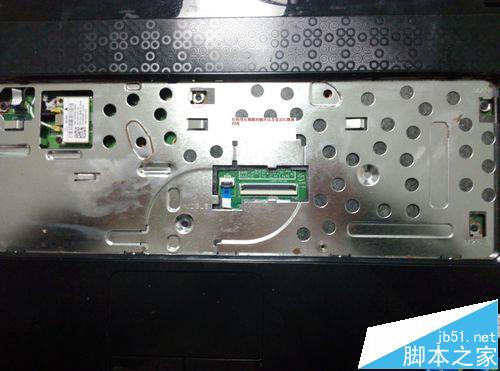3、用撬杠或者一字螺絲刀把卡扣頂進去鍵盤就出來啦,然后拔掉鍵盤下邊的線,這樣鍵盤就去掉啦。