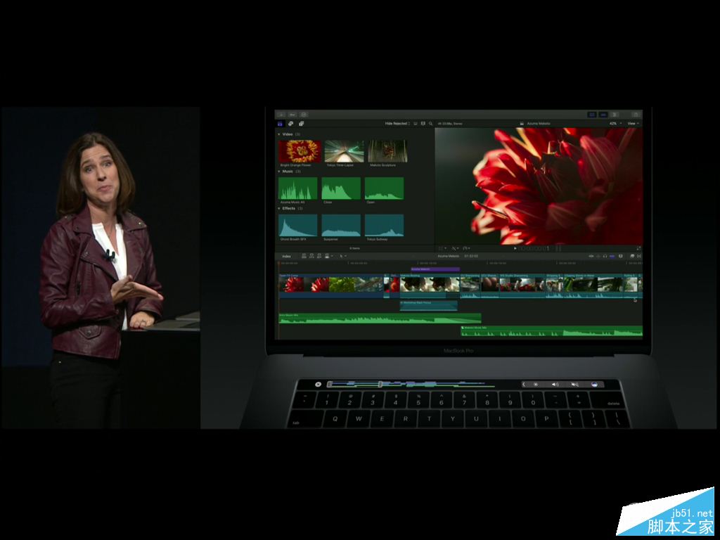 蘋果攜手三款 Mac 軟件進行了現場操作演示,而在今天之前你或許沒有想到過,在筆記本鍵盤上可以完成兩個手指相互配合的視頻剪輯、修圖和 DJ 打碟。