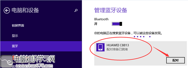 4. 如圖所示“出現配對準備已就緒”,點擊“配對”按鈕,系統會自動生成比較密碼,點擊“是”,同時手機也點擊配對。
