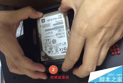 4、把硬盤塞入硬盤托架:此時把硬盤塞傾斜方向慢慢向硬盤托架推進。并塞好固定塞。