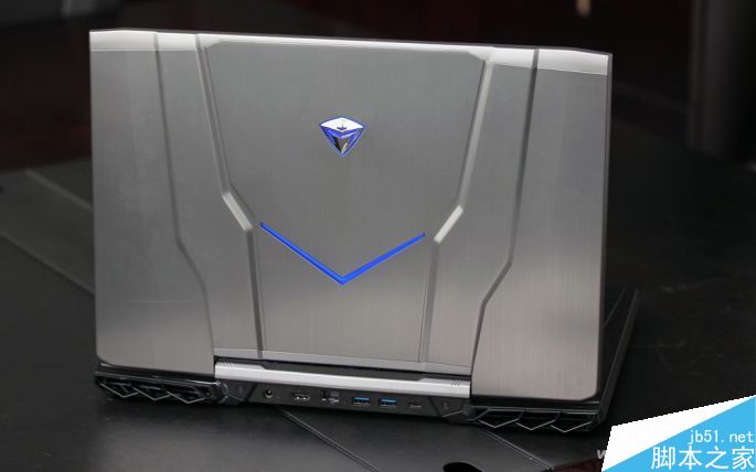 機械師F117給人的第一感覺就是酷,它引入了F117戰(zhàn)機的元素,金屬頂蓋的棱角線條、戰(zhàn)斗機噴氣孔風格的散熱口裝飾、機場藍光跑道風格的揚聲器,再結合炫酷的藍色鍵盤背光,讓F117的辨識度達到了一個非常高的地步,在眾多游戲本中看一眼就能給我們留下深刻的印象。對了,如果你覺得晚上藍色鍵盤背光太晃眼,可通過Fn+F6降低亮度將其關閉。