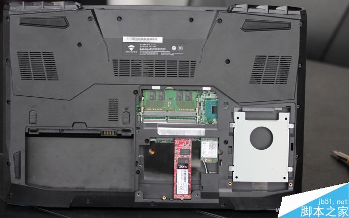 作為一款中高端游戲本,機械師F117同樣具備強大的升級潛力。該產(chǎn)品只需擰下即可螺絲就能拆下擴展倉板,對主要硬件進行替換升級。我們評測的F117標配240GB威剛SSD和1根8GB DDR4內存,有需要的玩家可再買跟內存實現(xiàn)雙通道模式。