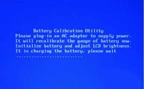10、充電完成,屏幕提示拔除電源適配器,開始放電,完成放電之后電腦會自動關閉的。