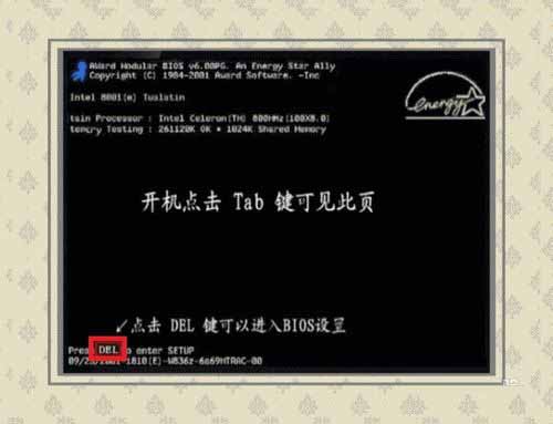 5、也可以開機查看第一屏,會有相關進入BIOS的按鍵提示。