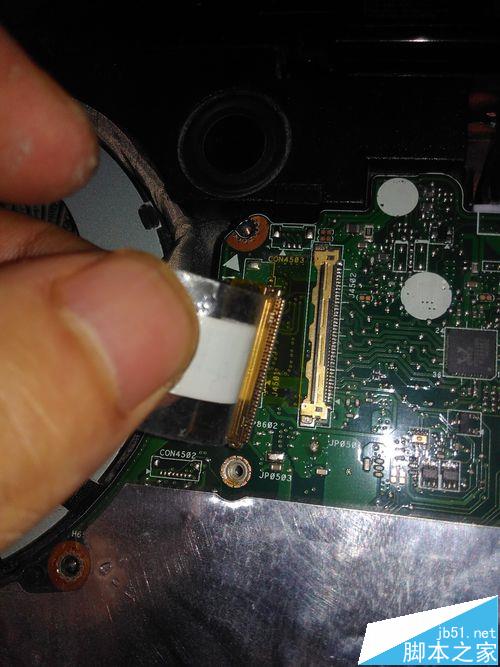 6、拔下屏幕連接線,這個應該是管開機的,有時候忘記插這個線,電腦不開機。