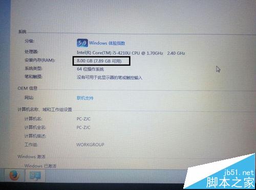 11、開機,查看電腦屬性,這時候電腦內存變成8G了