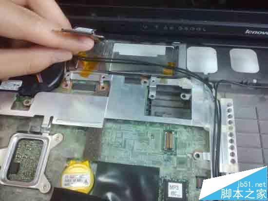 由于無線網卡固定著主板的一角,所以也要一起拆卸來。