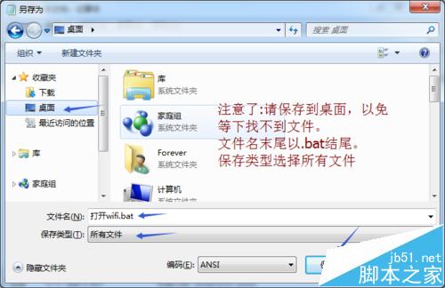 2、點擊左上角文件另存為--桌面--文件名格式以”.bat“結尾,如圖。