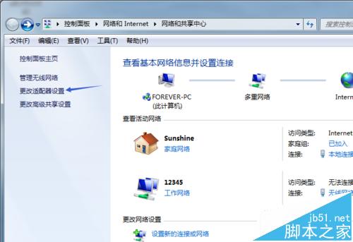 9、點擊左側網絡適配器,這里可以看到連接到電腦的本地網絡和剛剛創建的無線網絡。