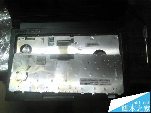 4、如上取下鍵盤,鍵盤下面的卡口是向上提的。