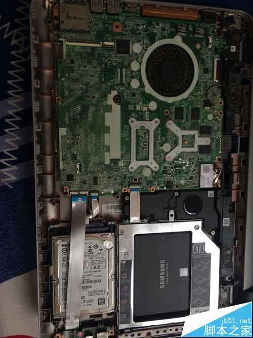 6、然后就拆開了,硬盤在右邊,內存條在主板下面