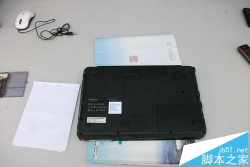 1、把筆記本反面朝上,找到電池板與主板蓋的位置。。