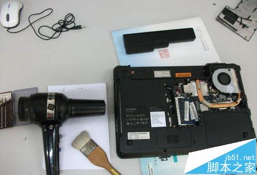 5、工具都準(zhǔn)備好,開始清灰了。。用吹風(fēng)先吹一遍,再用軟毛刷清理下吹不掉的灰塵以及臟東西。。