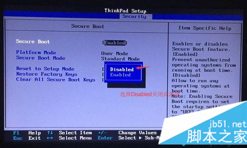 1、重啟筆記本,連續按F1(或Fn+F1)進入BIOS界面,在Security下選擇Secure Boot,按回車;