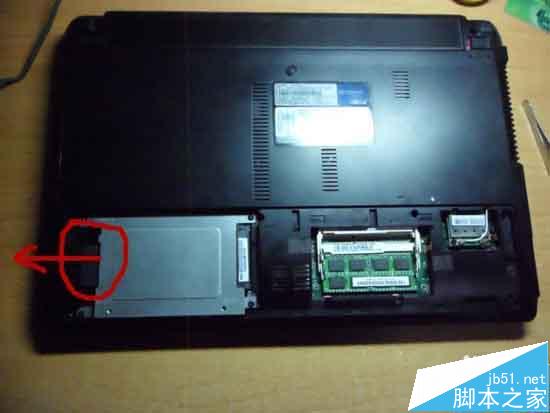 卸掉以后,滑動后蓋,可以輕松取下后蓋,露出硬盤、內存和無線網卡,卸掉硬盤的四顆螺絲。
