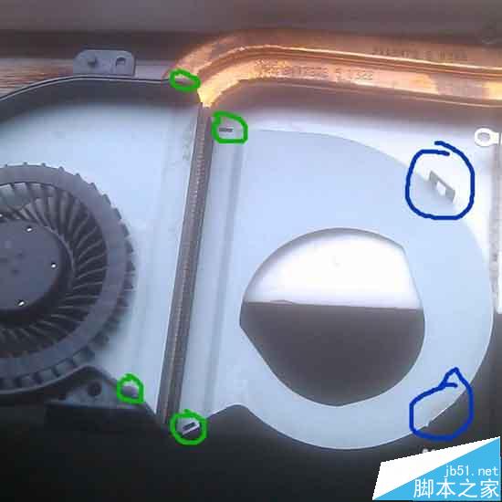 藍色部分的卡扣,再安裝的時候,先稍用力向內彎一下(因為我們先前撬過它),然后再把風扇那一半和蓋子這一半扣在一起。
