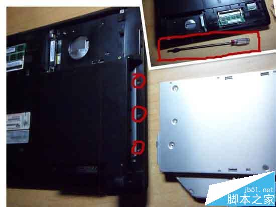 卸下鍵盤下所有螺絲后,拔出光驅。