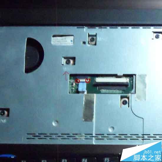 拆掉鍵盤后,露出六個螺絲位,其中左邊五個紅色是用來固定主板的,最右邊紅色那個除了固定主板順便用來固定光驅。