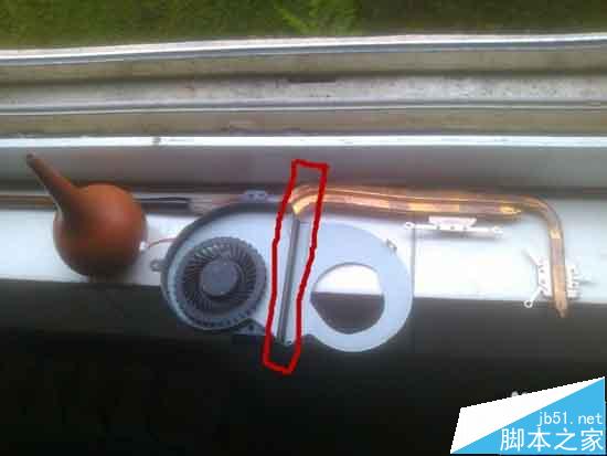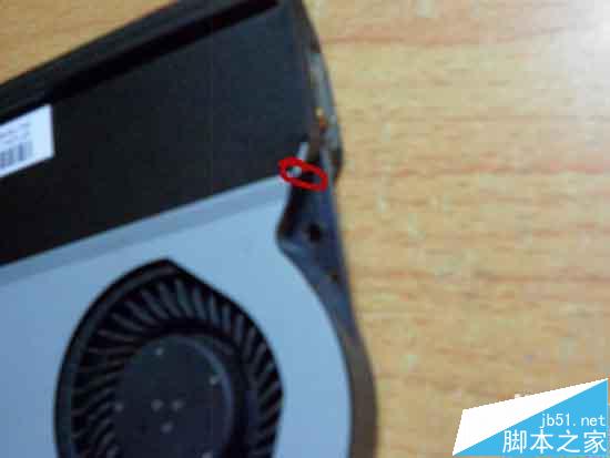 紅圈位置有小卡扣,左右各一個。卡扣空洞位于蓋子這一半上,卡扣突出部位于風扇這一半上。分離的時候,要注意輕輕的,不要損壞,也不用有意干預。安裝的時候,要記住這兩處的小卡扣也要剛好上下兩部分投在一起。