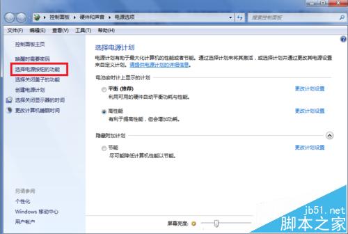 2、點擊彈出頁面左邊的“選擇電源按鈕的功能”。