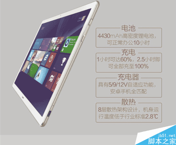 4、4430mAh鋰電池,辦公續航10小時,2.5小時充滿,1小時充入60%,5/9/12V自適應充電,支持所有安卓手機,8曾散熱結構,機身溫度比行業標準低2.8℃。