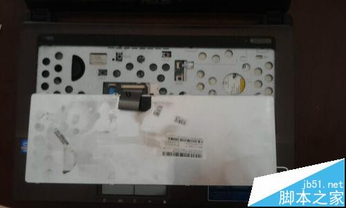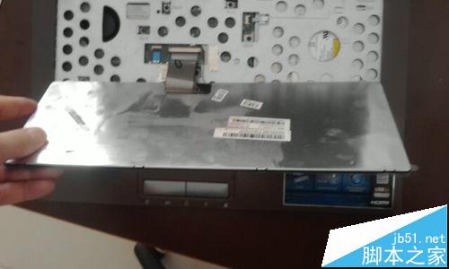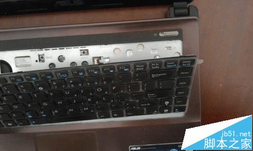7、撬開之后,輕輕地將鍵盤向上抬起來,抬的時候,只抬鍵盤的上部分,下部分盡量不要懸空,以防止把鍵盤的數據線扯壞。