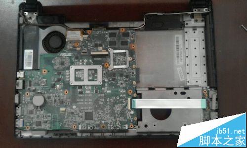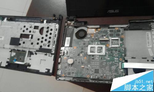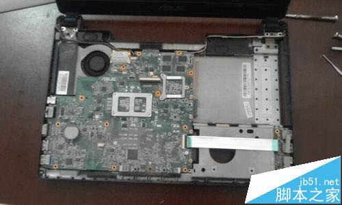 13、撬開后,把上殼拿到一邊。筆記本的主板就完全的裸露出來了。這里,我們把主板上的螺絲也擰下來。