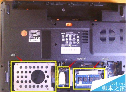 2、底蓋共有12個螺絲都要卸下,然后把內存條上的后蓋拿掉,可以看到硬盤、無線網卡和內存條。