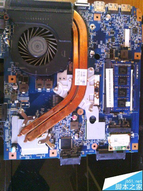 7、取下主板,由于電源接線不容易取下,所以可以不完全取下主板,將主要的數據線和接口線取下即可。主板背面就可以看到風扇了
