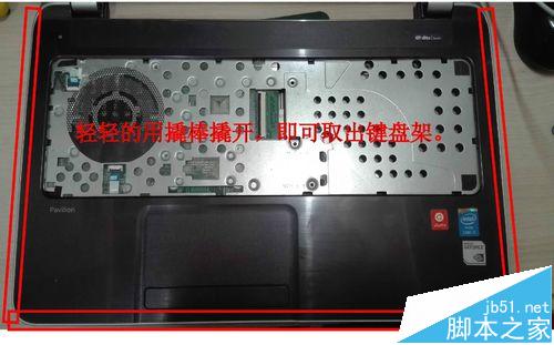 10、用撬棒撬開鍵盤支架,取走支架,小心點,別弄壞邊框