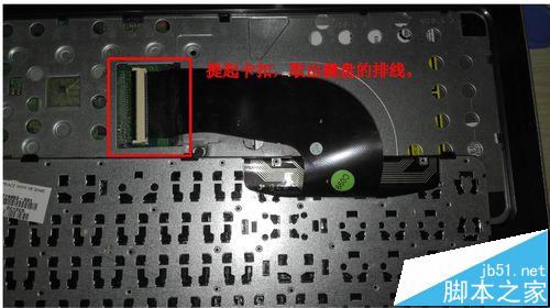 6、將鍵盤翻過來,提起卡扣將排線取下