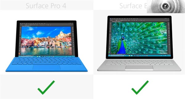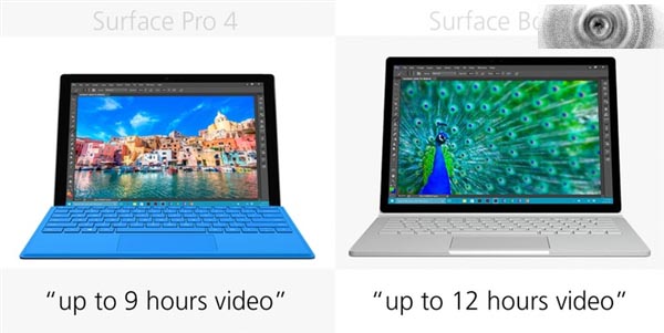 在一致對外上,Surface Pro 4和Surface Book相當團結,微軟也毫不吝惜地稱贊這哥倆遠遠勝過蘋果的iPad Pro和Macbook。