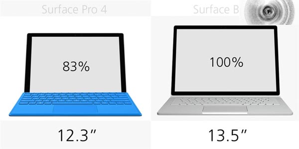 在厚度方面,Surface Pro 4的裸機厚度為8.5mm,在裝備鍵盤保護套之后厚度分別為13.2mm(帶指紋傳感器的Type Cover)和13.4mm(標準SP4 Type Cover);而在Surface Book的厚度測量方面則根據折疊厚度,在13mm到22.8mm之間,在不接鍵盤的情況下屏幕厚度為7.7mm。