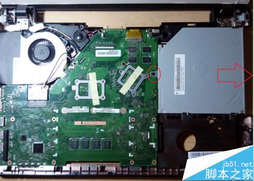 6、擰下這顆螺絲,向右滑動卸下光驅,如下圖