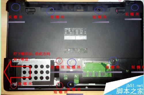 1、首先翻過本本,卸下電池與光驅蓋,如下圖