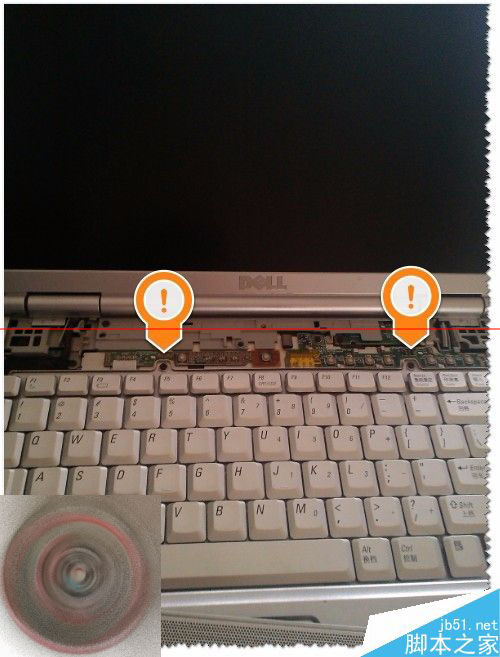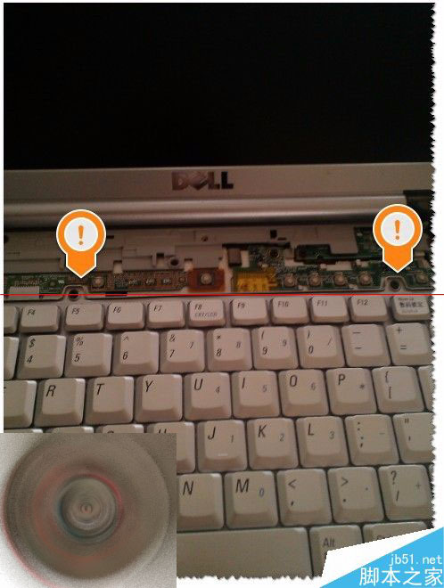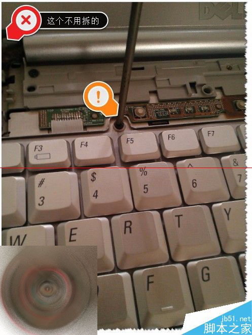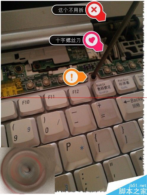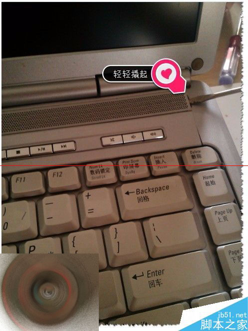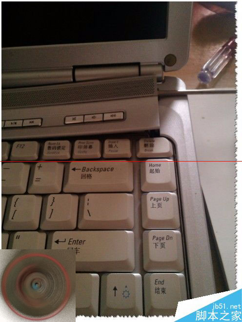 2、用十字螺絲刀把鎖鍵盤的兩個(gè)螺絲給拆了。如圖