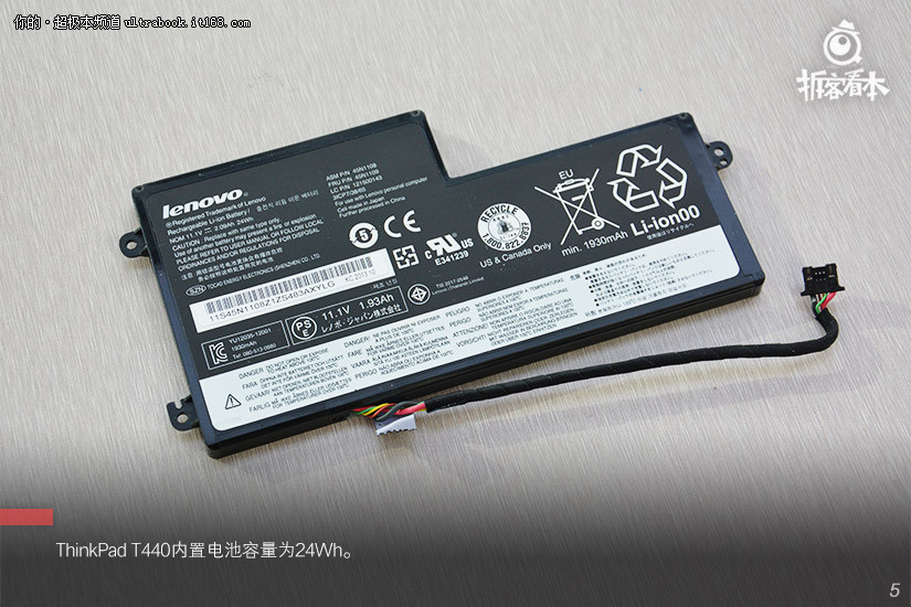 得益于雙電池的設(shè)計,ThinkPad T440內(nèi)置電池設(shè)計較小,容量為24Wh