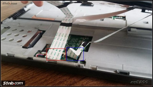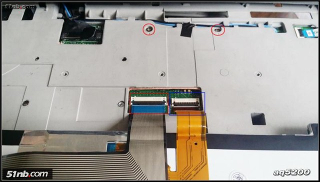 松開(kāi)螺絲后從上端把鍵盤(pán)翻起,鍵盤(pán)絲拆下