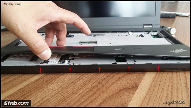 底部螺絲全拆掉,翻過(guò)來(lái)先把鍵盤(pán)上端與掌托連接處的地方輕輕掰開(kāi)