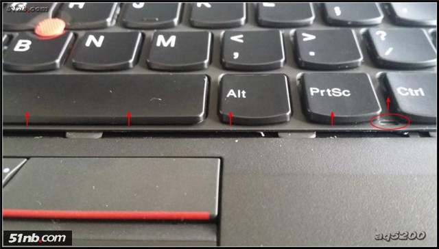 注意圓圈的地方,這里有膠紙粘著鍵盤(pán)撥動(dòng)板