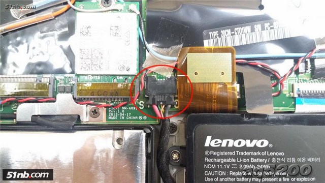 X250左側(cè)接口 ①電源接口 ②VGA接口 ③USB 3.0 ④mini DisplayPort接口 ⑤SmartCard讀卡器