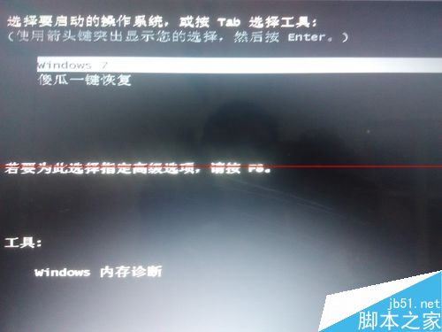 2、按Ent,出來(lái)這個(gè)選擇界面。選擇高級(jí)選項(xiàng),按F8