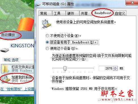 U盤插入后在彈出的對話框就可啟動ReadyBoost技術