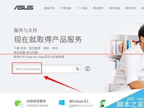 四、在那個輸入框內輸入->ASUS Smart Gesture。