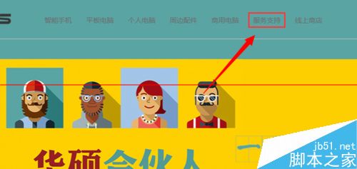 二、進入華碩官網之后,選擇->服務支持。