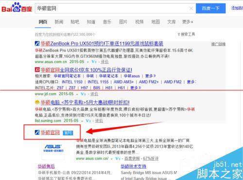一、到瀏覽器上搜索“華碩官網”。