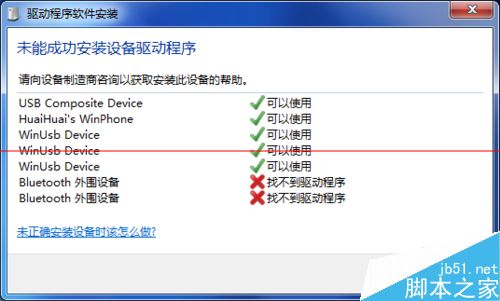 2、這是由于部分手機服務及驅動是系統無法識別的。在手機和筆記本配對成功時會彈出一個手機藍牙服務驅動安裝情況的對話框。如下圖。這些找不到驅動程序的服務,就會在設備管理器中以“Bluetooth外圍設備”出現。